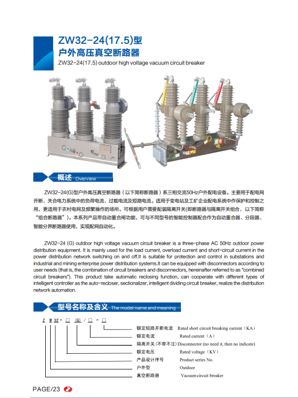 | ZW32-24(17.5)型戶外高壓真空斷路器 | |
